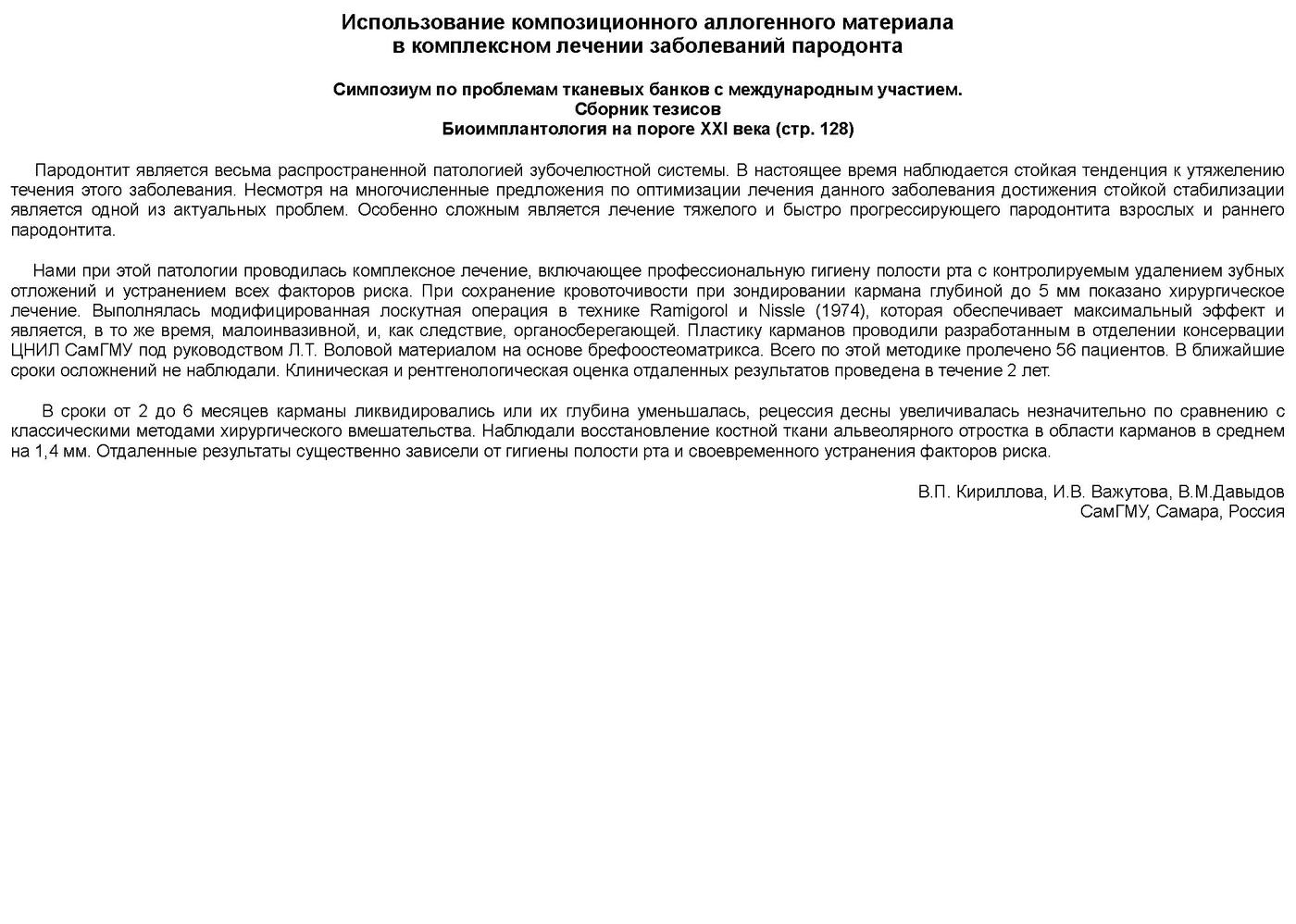 5. Использование композиционного аллогенного материала в комплексном лечении заболеваний пародонта