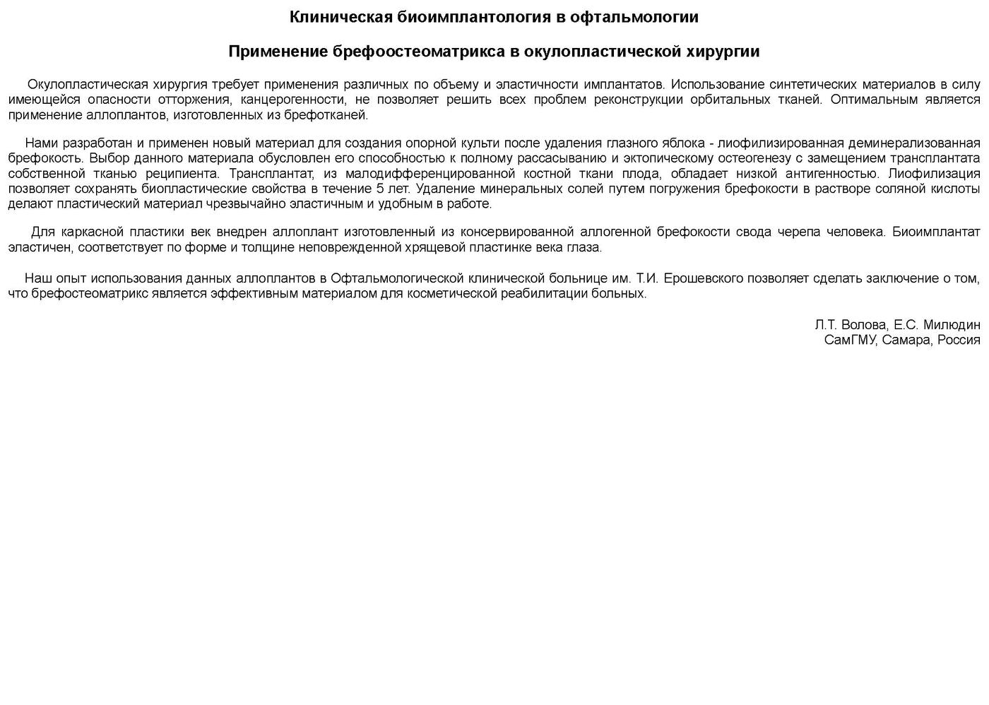 Наш опыт использования данных аллоплантов в Офтальмологической клинической больнице им.