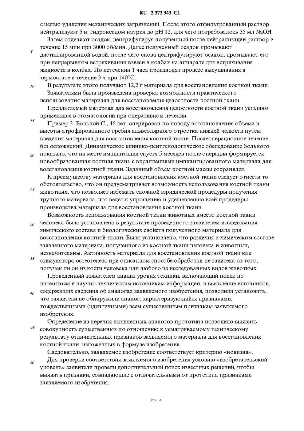 РОССИЙСКАЯ ФЕДЕРАЦИЯ ФЕДЕРАЛЬНАЯ СЛУЖБА ПО ИНТЕЛЛЕКТУАЛЬНОЙ СОБСТВЕННОСТИ, ПАТЕНТАМ И ТОВАРНЫМ ЗНАКАМ (51) МПК A61K 35/32 (2006.01) A61K 33/00 (2006.01) A61L 27/00 (2006.01) (19) RU(11) 2 373 943(13) C1 (12) ОПИСАНИЕ ИЗОБРЕТЕНИЯ К ПАТЕНТУ (21)