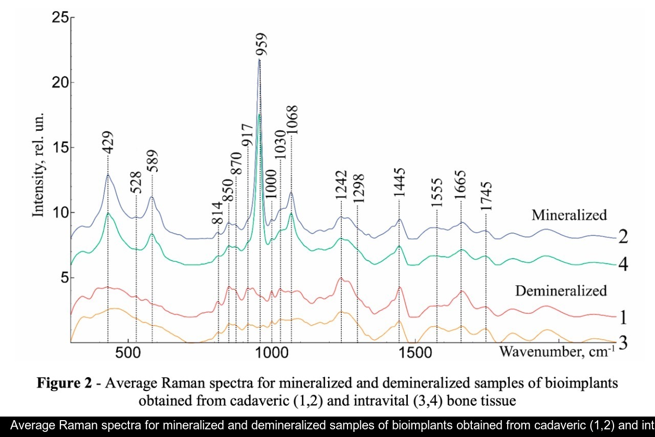 This paper presents the results of the experimental study of the use of ultrasonic treatment for the production of bone implants using Raman spectroscopy (RS).
