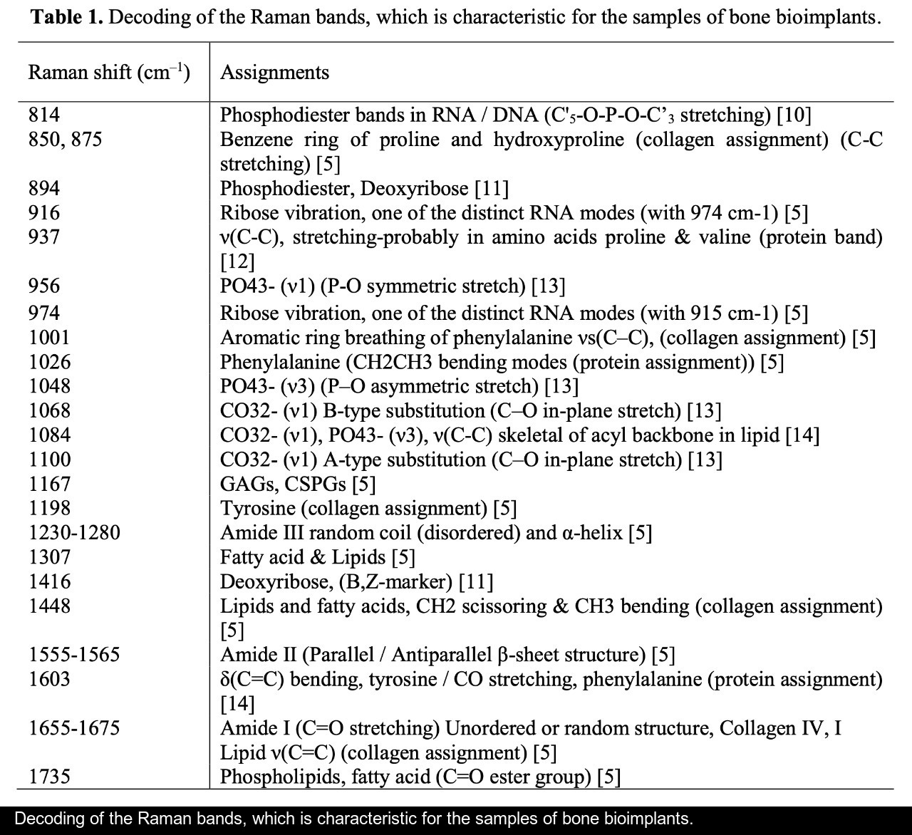 The results of application of the Raman spectroscopy method for estimating alternative sources for the production of bone spongy implants using the "Lioplast" technology, namely, the femoral head heads resected in the operation of hip replacement surgery, are presented.