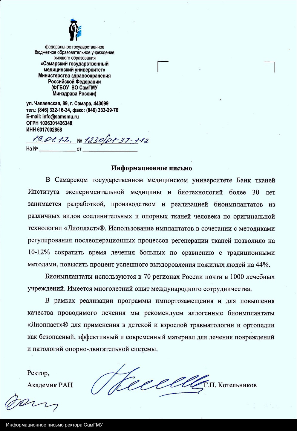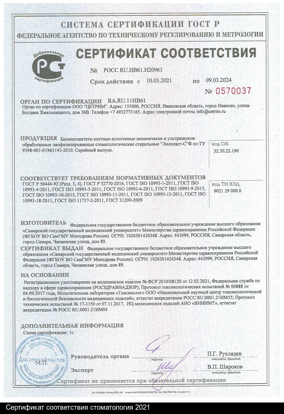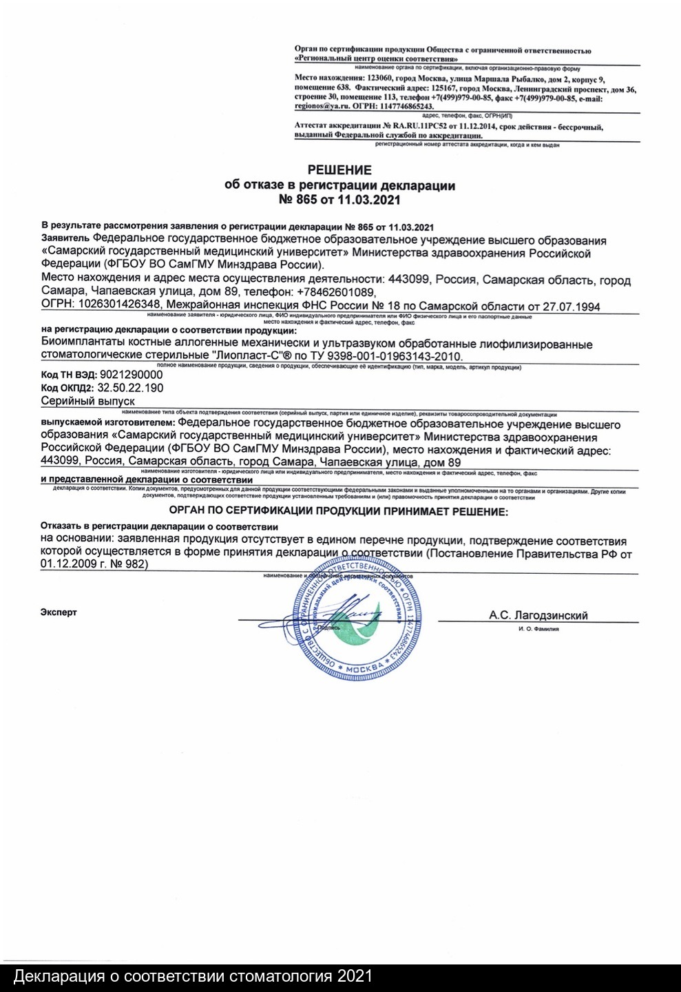 За время существования Самарского Банка Тканей все виды костно-замещающих материалов по технологии «Лиопласт» прошли клиническую апробацию во многих городах России и ЕЭС.