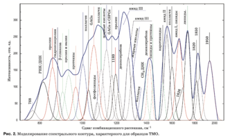Представлены результаты сравнительной спектральной оценки компонентного состава поверхностей образцов имплантатов на основе твердой мозговой оболочки, изготовленных по технологии «Лиопласт»®, с ультразвуковой обработкой и без нее. В качестве основного метода контроля выбран метод спектроскопии комбинационного рассеяния. В результате проведенных исследований предложены критерии, позволяющие оценить относительную концентрацию основных компонентов экстрацеллюлярного матрикса. Показано, что деконволюция спектров методом подбора спектрального контура и хемометрический анализ методом главных компонент позволяют провести расширенный компонентный качественный и количественный анализ биоимплантатов на основе твердой мозговой оболочки по содержанию основных показателей биоматрикса и установить наиболее репрезентативные параметры, влияющие на качество имплантатов при экспрессной оценке.