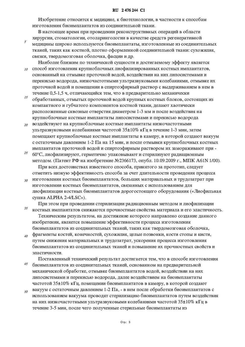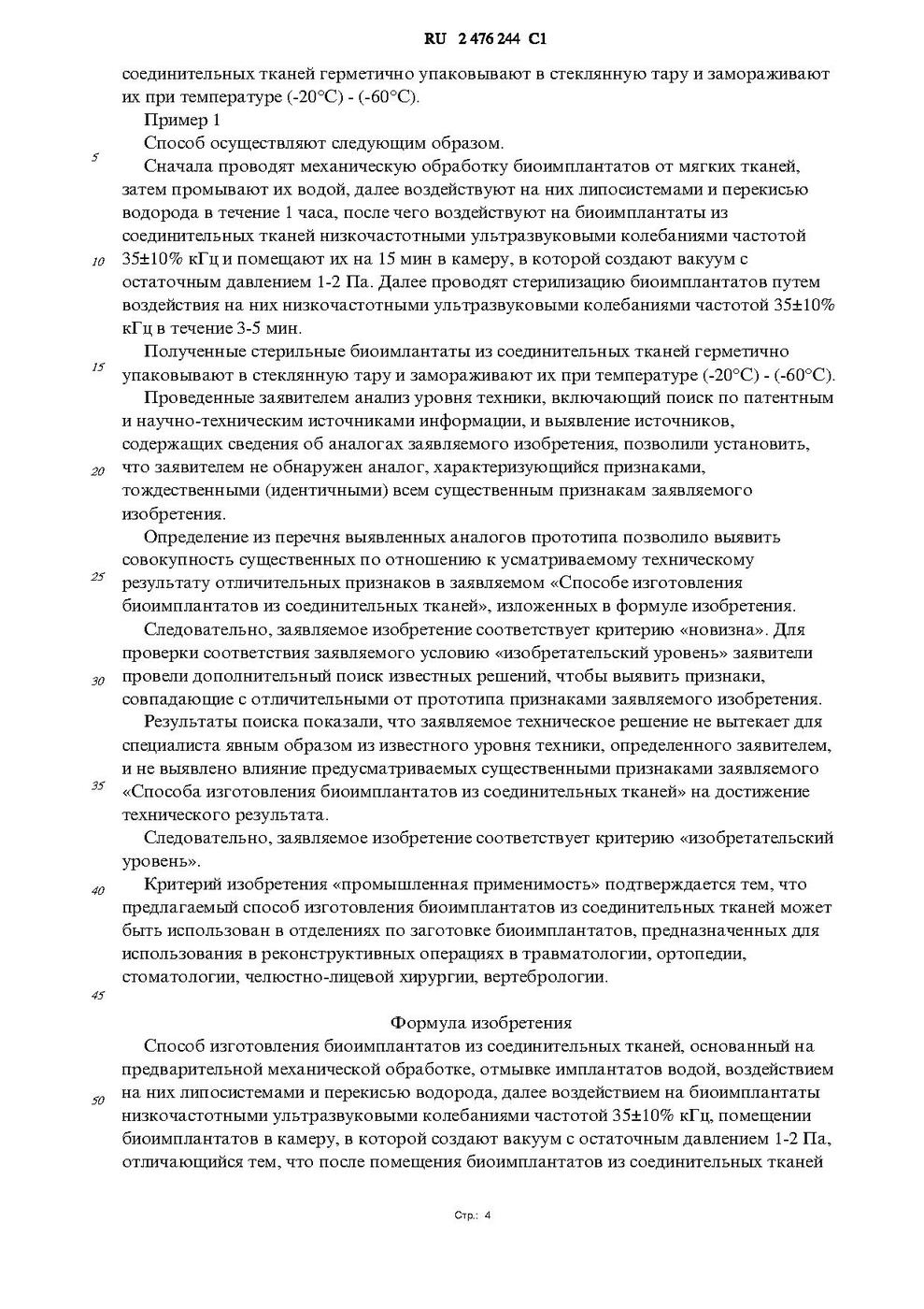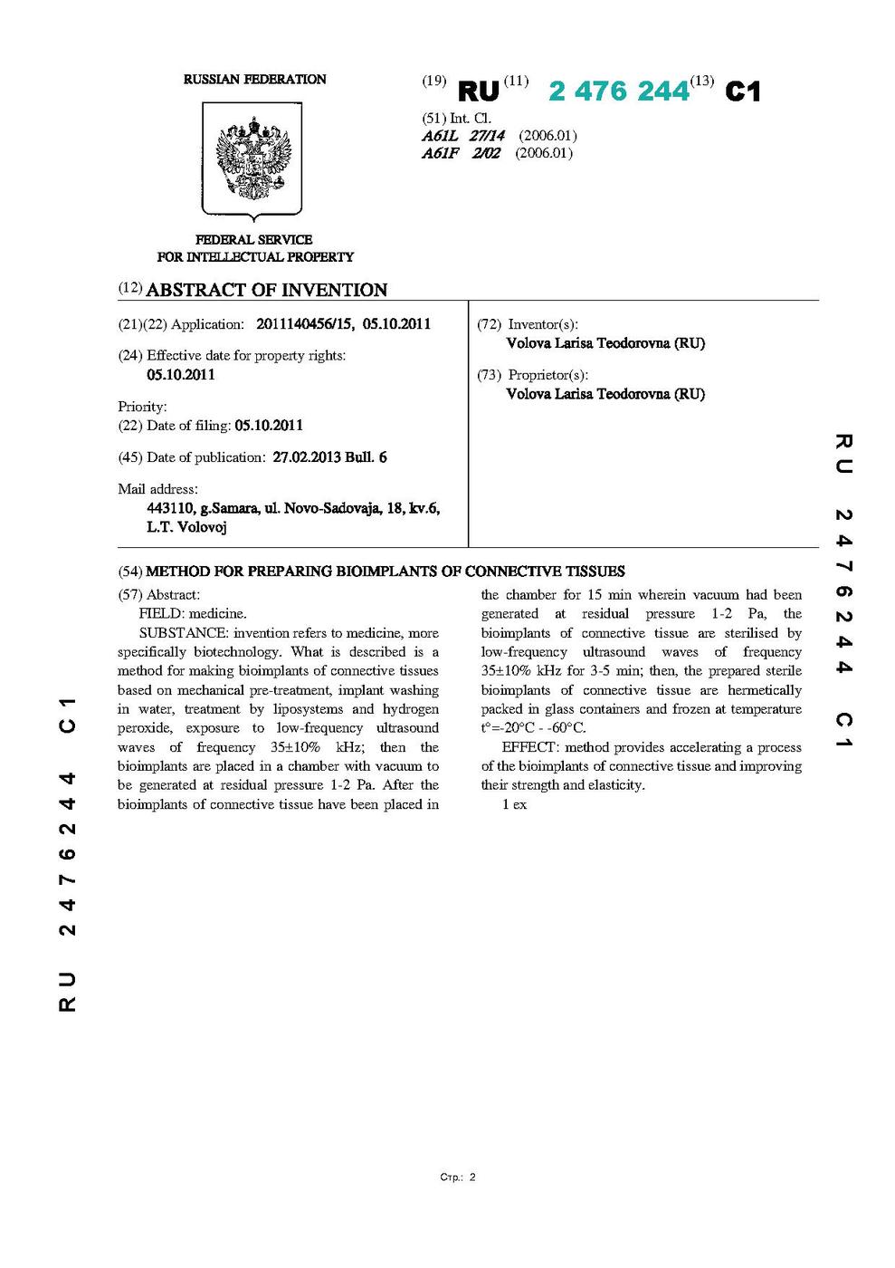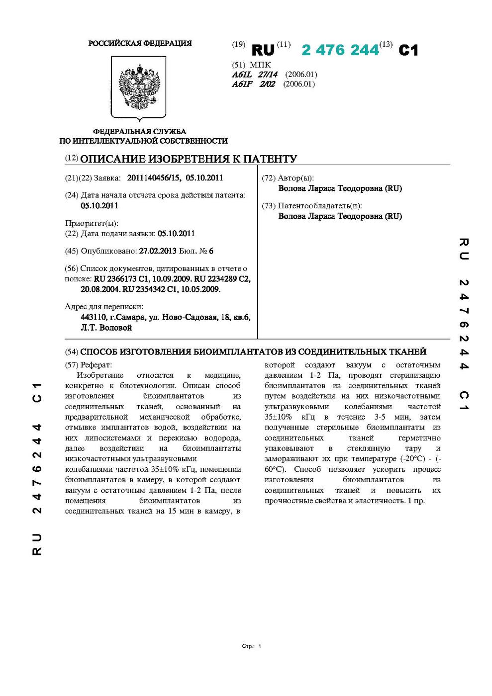 МПК A61L 27/14 (2006.01) A61F 2/02 (2006.01) (19) RU(11) 2 476 244(13) C1 (12)