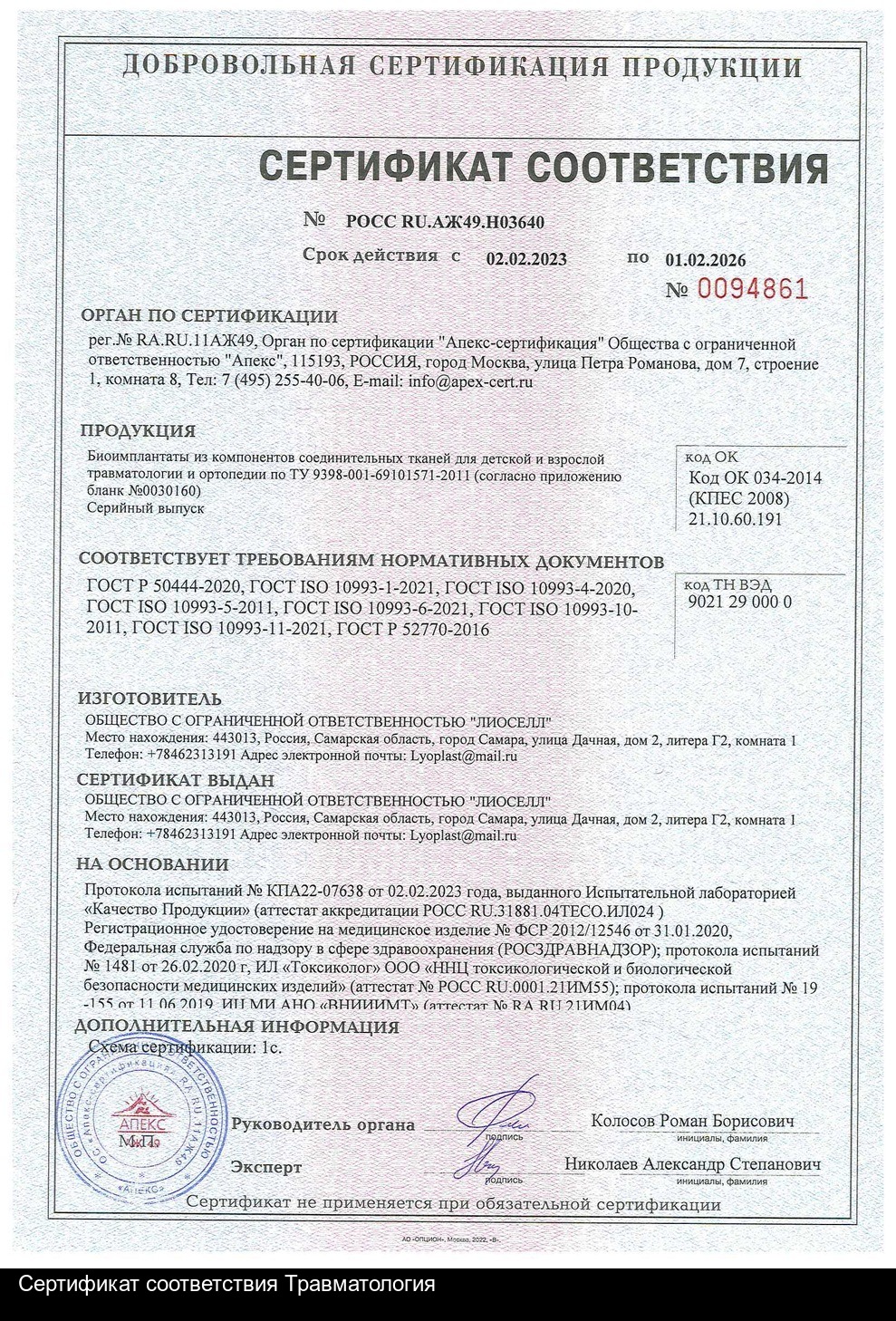 Применение биоимплантатов "Лиопласт"® одобрено Министерством здравоохранения.