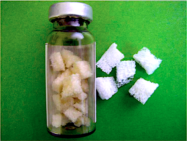 Спонгиозная крошка (кубики-чипсы) - Средне измельченный костный препарат натурального кадаверного (трупного) происхождения, аллогенный материал.